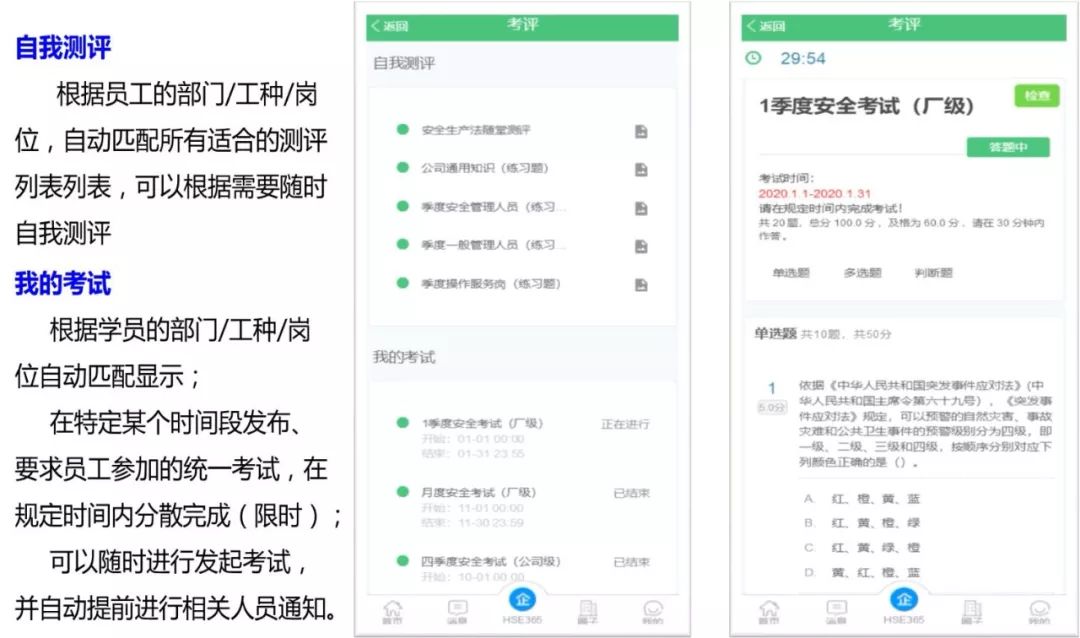 支持萬(wàn)人同時(shí)考評(píng)在線,人員參與無(wú)紙化的分散日常測(cè)評(píng)和考試。擁有龐大的題庫(kù),按學(xué)習(xí)范圍、難易程度、考試題目順序、答案順序等方式進(jìn)行一鍵多形式組卷,即考即出結(jié)果,直接電子化遠(yuǎn)端簽字確認(rèn),將考卷和成績(jī)?cè)屏舸?可打印,支持查詢審核,更好的實(shí)現(xiàn)了“以測(cè)代學(xué)、以測(cè)驗(yàn)學(xué)、以考嚴(yán)學(xué)”的價(jià)值效果。